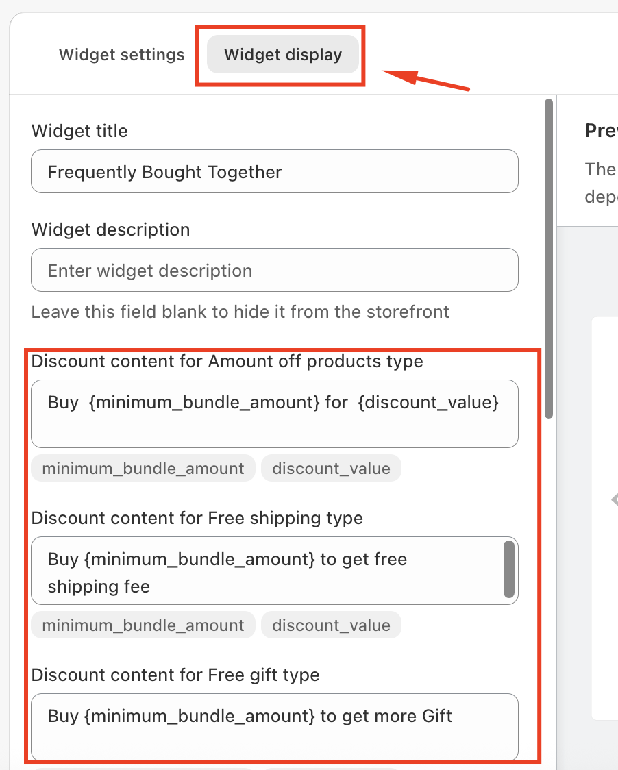 You can also customize how this message appears to customers. The text related to the Minimum purchase amount can be edited directly in the Widget Display settings, allowing you to better match your store’s tone and messaging.