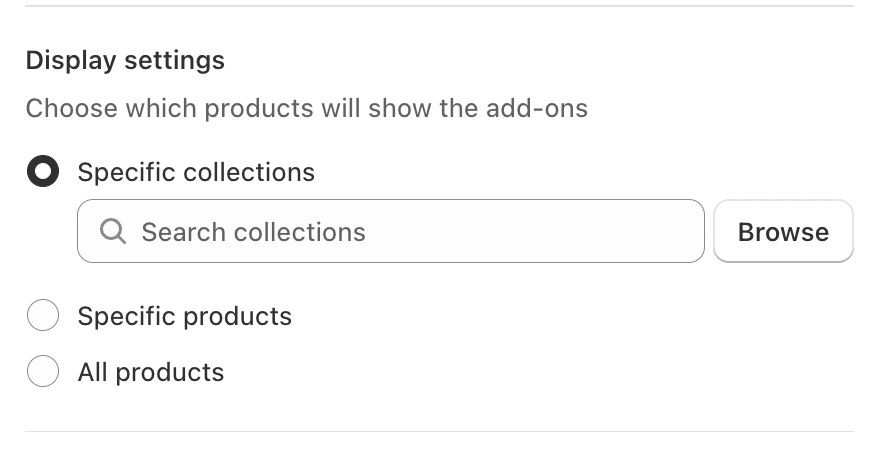 Specific collections – Show the add-on only for products within selected collections