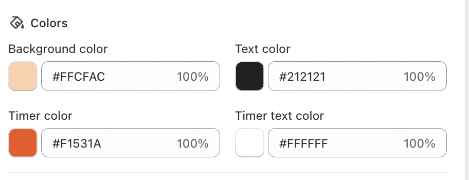 Controls the background behind the timer and text. Choose a color that contrasts with your product page while remaining visually comfortable.