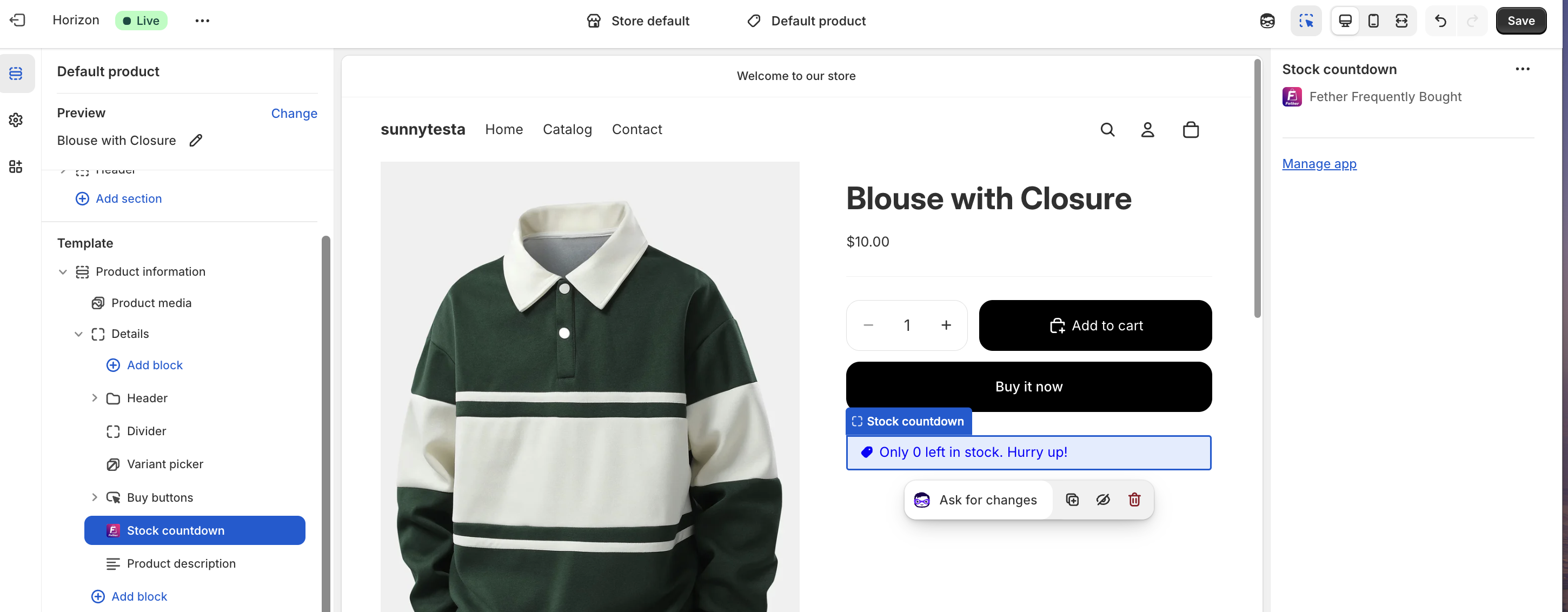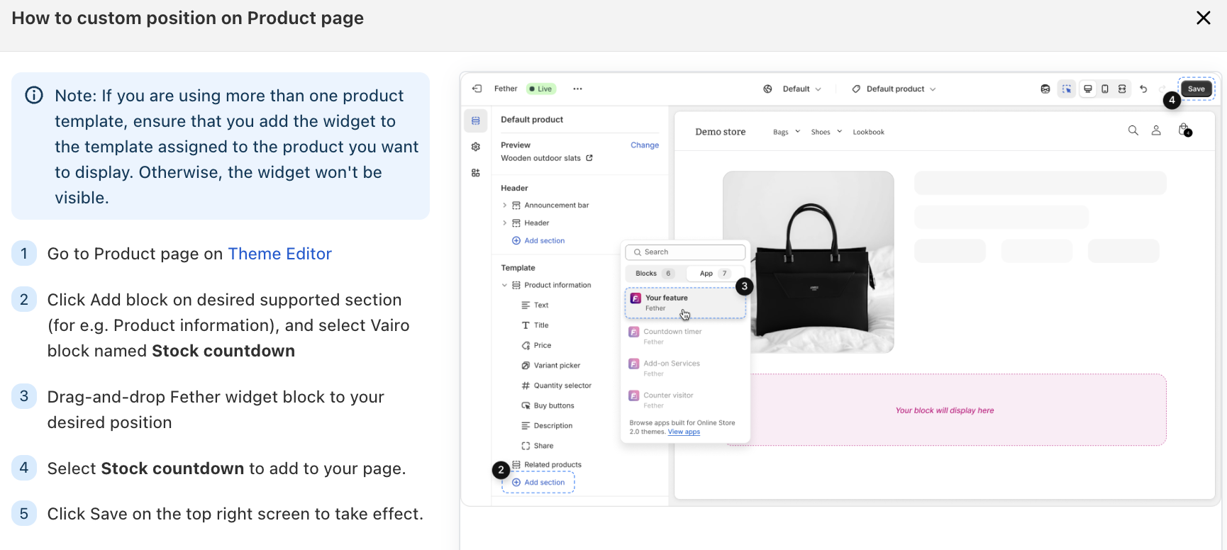 Customizing the position of an app widget on your product page allows you to control how customers experience key information such as urgency, availability, or promotions. By placing the widget exactly where it has the most impact, you can improve clarity and conversion.