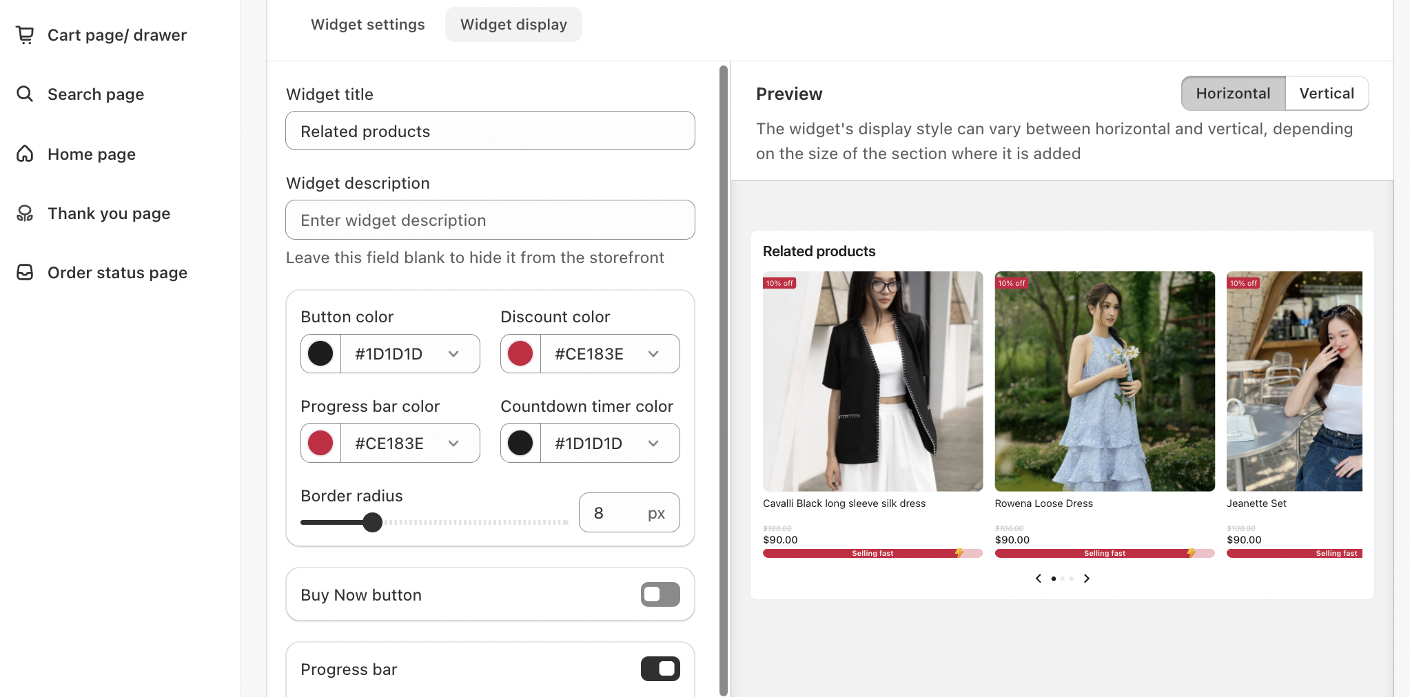 Switch to the Widget display tab to customize the visual appearance and behavior of the Related Products widget.
