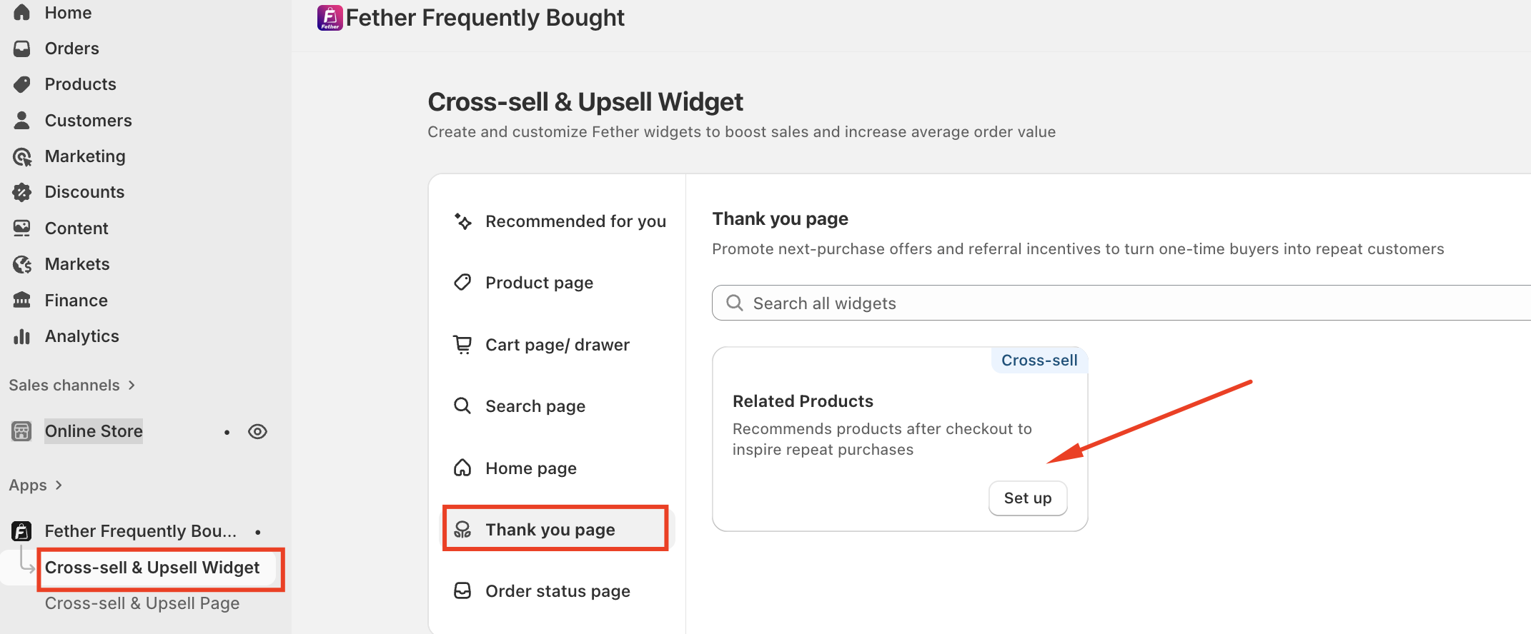 Open the Cross-sell & Upsell Widget-->Thank you page --> Set up on Related Products