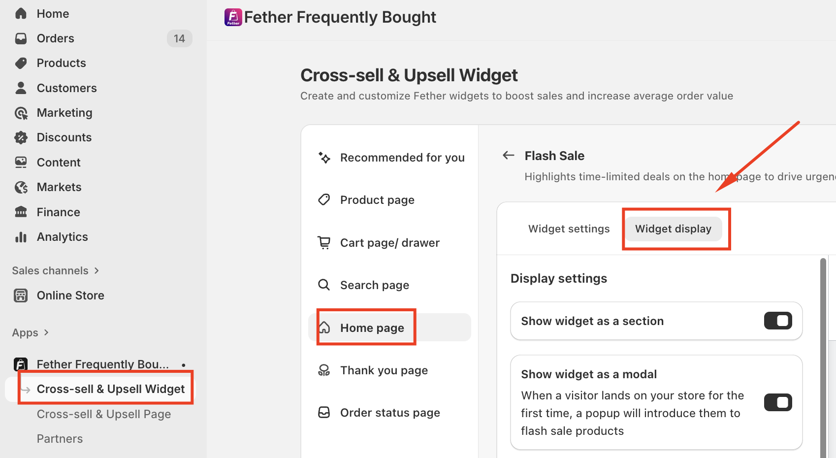 Open Cross-sell & Upsell Widget --> Home page --> Set up on Flash Sale