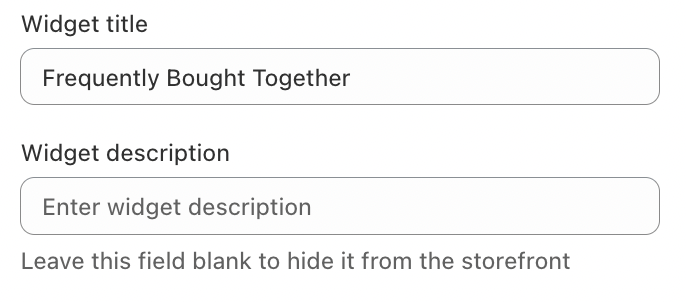 The main heading shown at the top of the widget (for example, “Frequently Bought Together”).